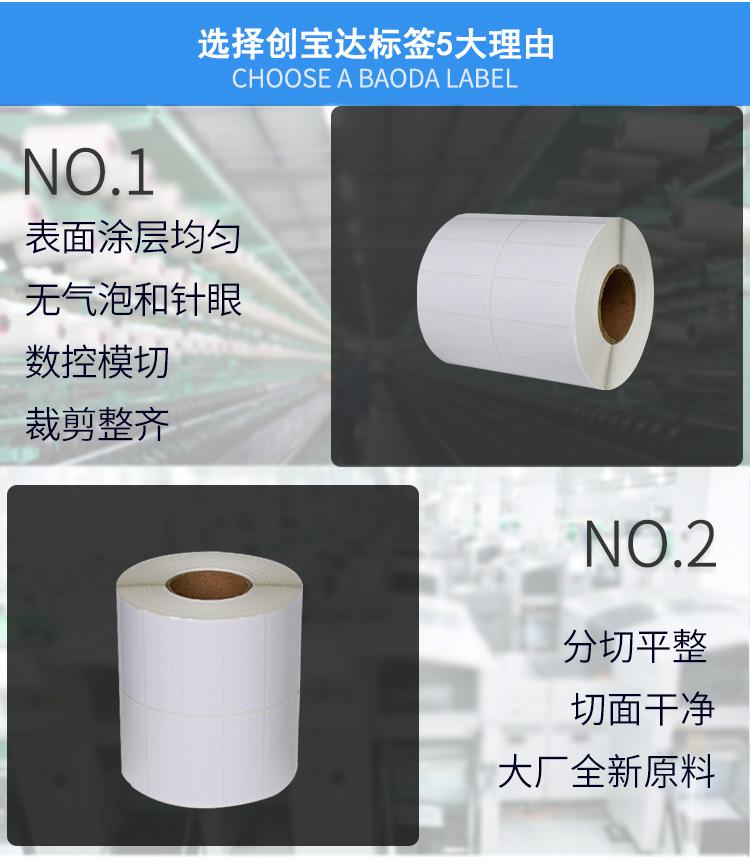 适合不同气候地区使用,适用电子电器、五金塑胶、服装、医药、日化、食品、商超、仓储物流、资产管理、条码标识、外箱贴纸等长期保存的产品标签及外箱标签同时也可以用于长时间保存(配合碳带)的亚马逊、邮政国际、物流标签、邮政包裹、EBAY、速卖通、递四方、出口EUB标签、出口电商等标签